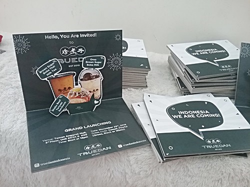 Popuplab.id pernah mendapat pesanan dari customer yang menginginkan sebuah popup card untuk acara launching produk kuliner nya. Produk ini merupakan produk franchise dari Negara Sakura / Jepang. Customer saya ini merupakan franchise pertama produk ini di Indonesia. Jadi membutuh persiapan yang sangat matang supaya acara launching produknya sangat berkesan dan banyak yang tertarik.